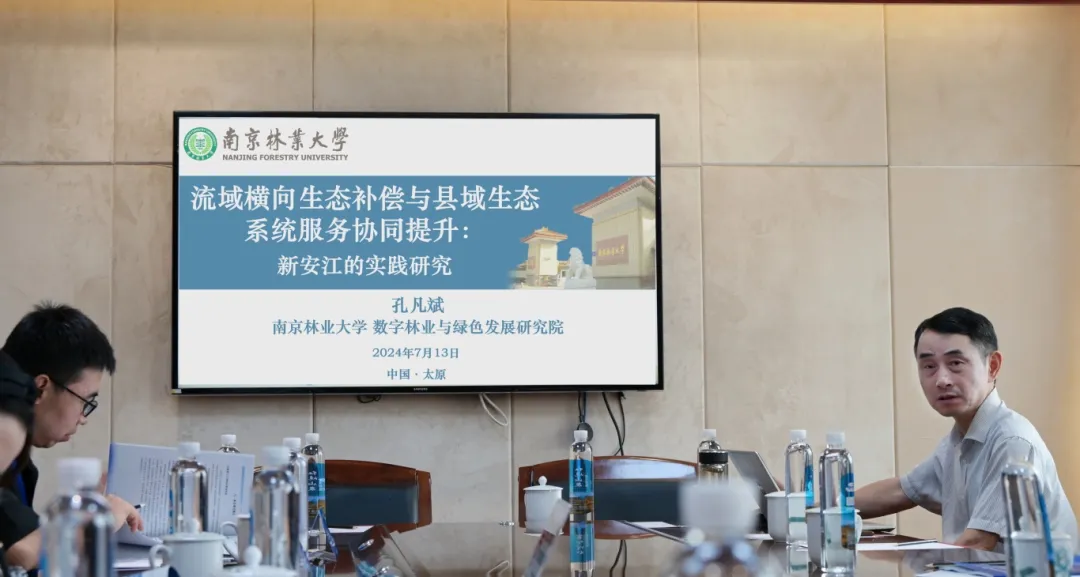 在专题报告环节,孔凡斌教授作了题为《流域横向生态补偿与县域生态系统服务协同提升:新安江的实践》的报告。在报告中,孔凡斌教授指出,新安江流域横向生态补偿试点是中国首次探索建立流域横向生态补偿机制及流域上下游之间生态"对赌"实践的典型案例,该实践探索能否实现上下游地区生态效益协同发展目标的"双赢",关键在于流域上下游能否同时获得生态增益。山水林田湖草是生命共同体,自然生态系统具有整体性和系统性,同一个生态系统内部各生态要素和服务功能之间相互依存和紧密联系。新时代建设人与自然和谐共生的中国式现代化,要求必须协调好生态保护和经济发展的关系,坚持走高水平保护生态和高质量发展经济的新路。流域是由山水林田湖草和人组成的自然社会经济复合生态系统,"人的命脉在田,田的命脉在水,水的命脉在山,山的命脉在土,土的命脉在树",山水林田湖草是生命共同体。新时代流域水环境治理要求将山水林田湖草和人作为一个完整复合生态系统进行统筹规划、综合治理,要从传统单一的水环境治理转变为统筹山水林田湖草一体化保护和系统治理的流域综合管理,坚持"治湖必须治江,治江必须治山,治山必须治贫"的指导思想,以水为纽带,统筹山水林田湖草系统保护治理与经济高质量发展,不断探索和实践人与自然和谐、生态与经济相协调的流域发展新模式。
